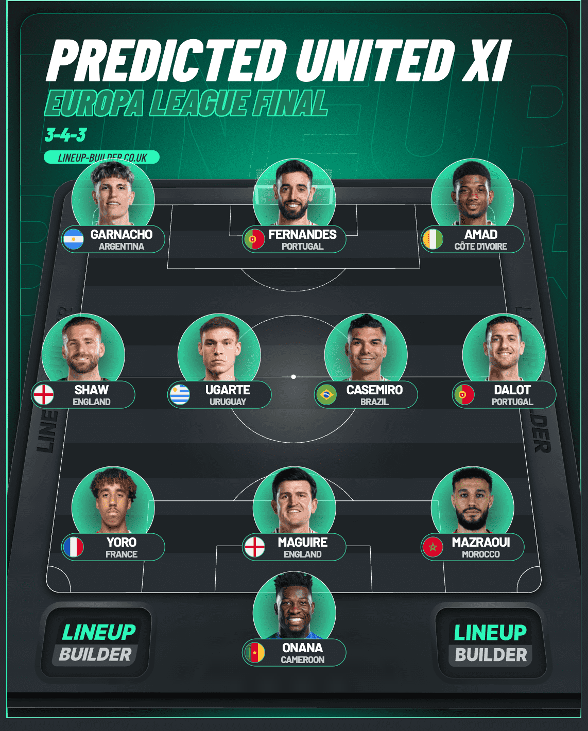 Playing Ugarte alongside Casemiro would allow Fernandes to replace Hojlund and play as a false nine. If Hojlund plays, Fernandes will likely be in midfield alongside the Brazilian, with Ugarte missing out.