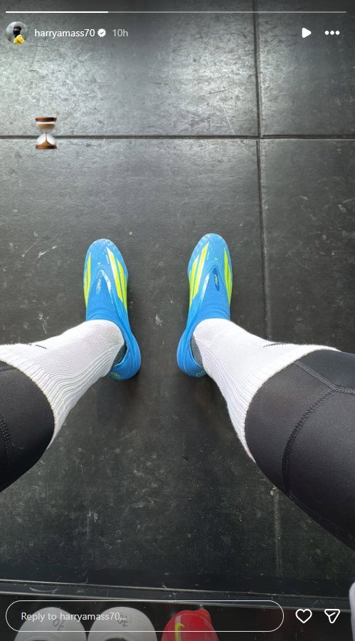Amass posted an image of himself with boots on. He captioned the picture with an hourglass emoji, presumably suggesting that he is back training on the grass and not too far away from making a return.